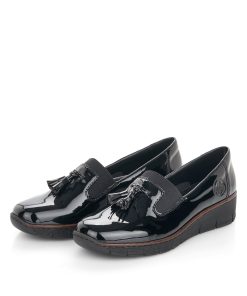 Style and comfort – forever inseparable! These Rieker shoes have been intricately crafted. The traditional stitchdown construction makes the shoe particularly flexible and robust and ensures a great fit. The elastic band makes the shoe especially easy to put on and take off. The black decorative tassel effectively fres