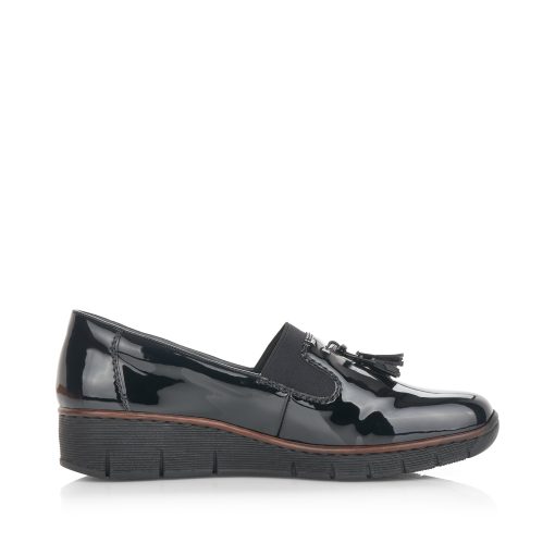 Style and comfort – forever inseparable! These Rieker shoes have been intricately crafted. The traditional stitchdown construction makes the shoe particularly flexible and robust and ensures a great fit. The elastic band makes the shoe especially easy to put on and take off. The black decorative tassel effectively fres