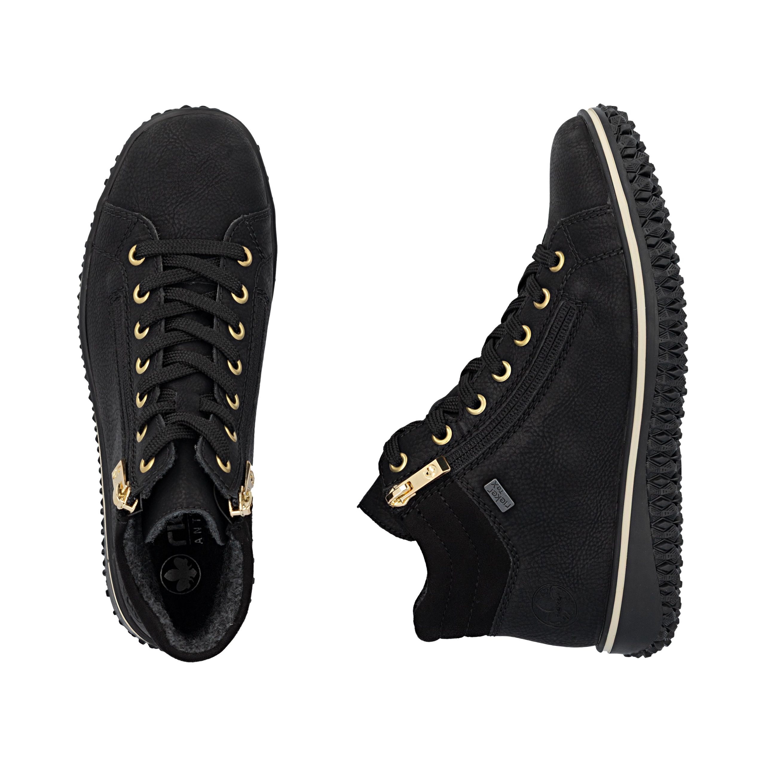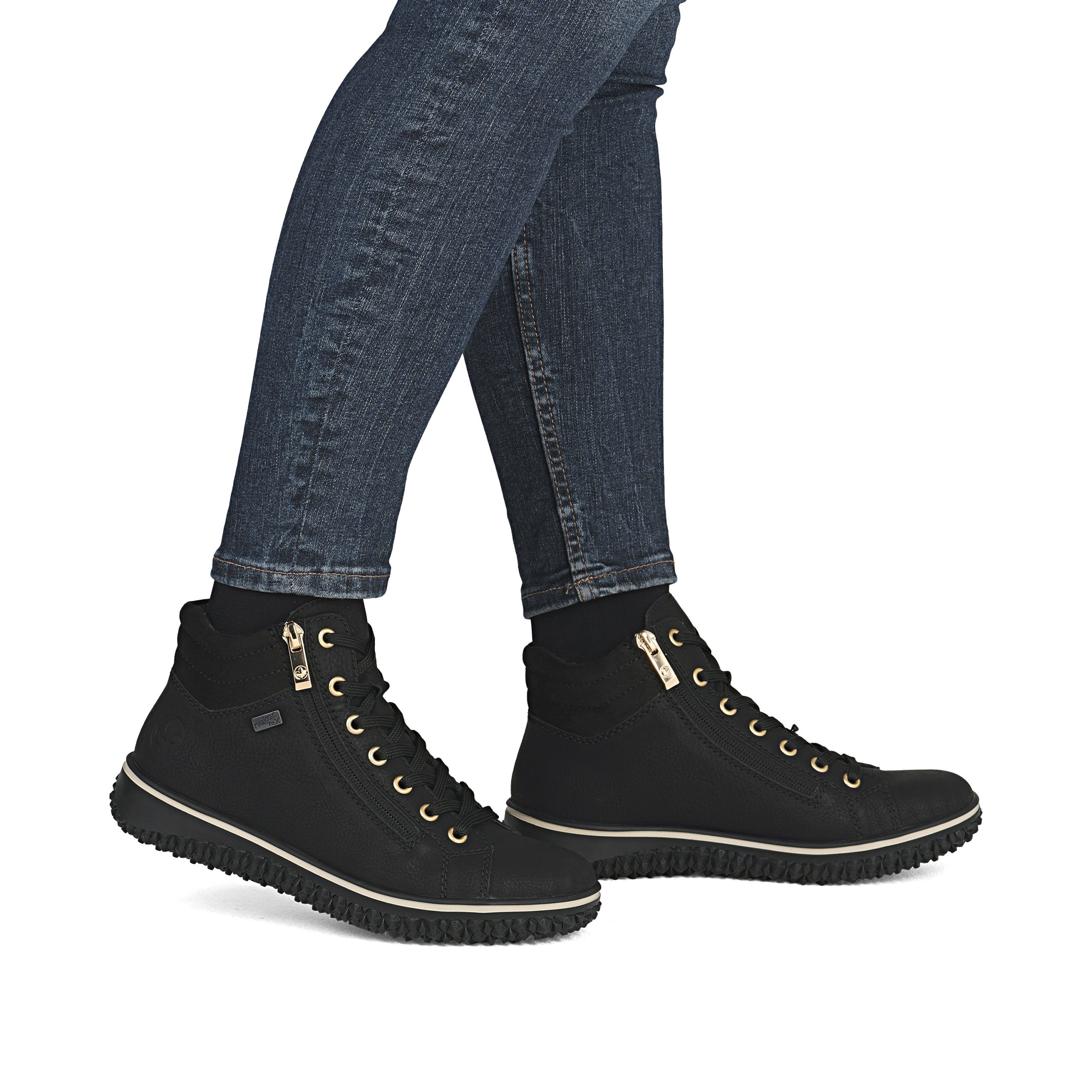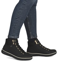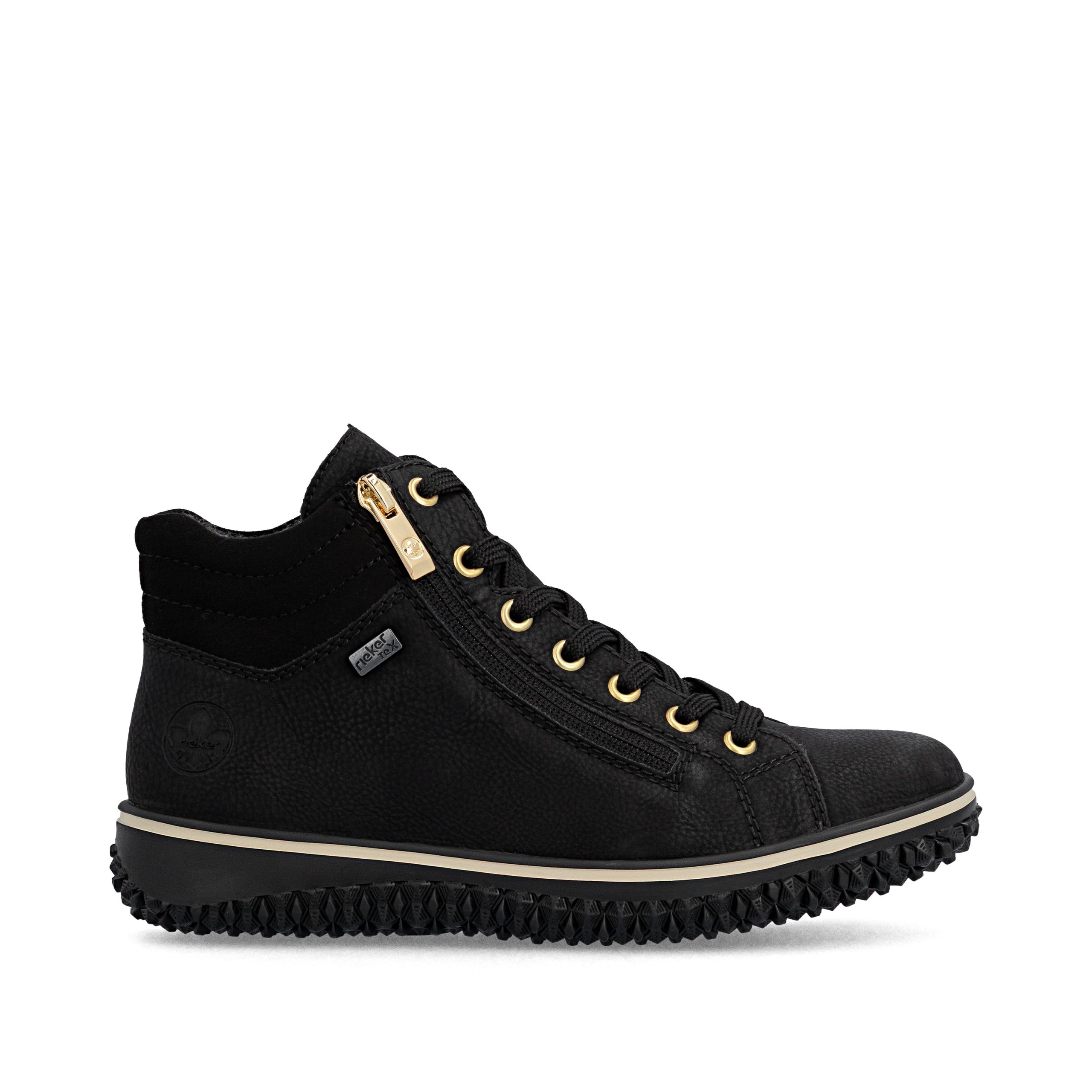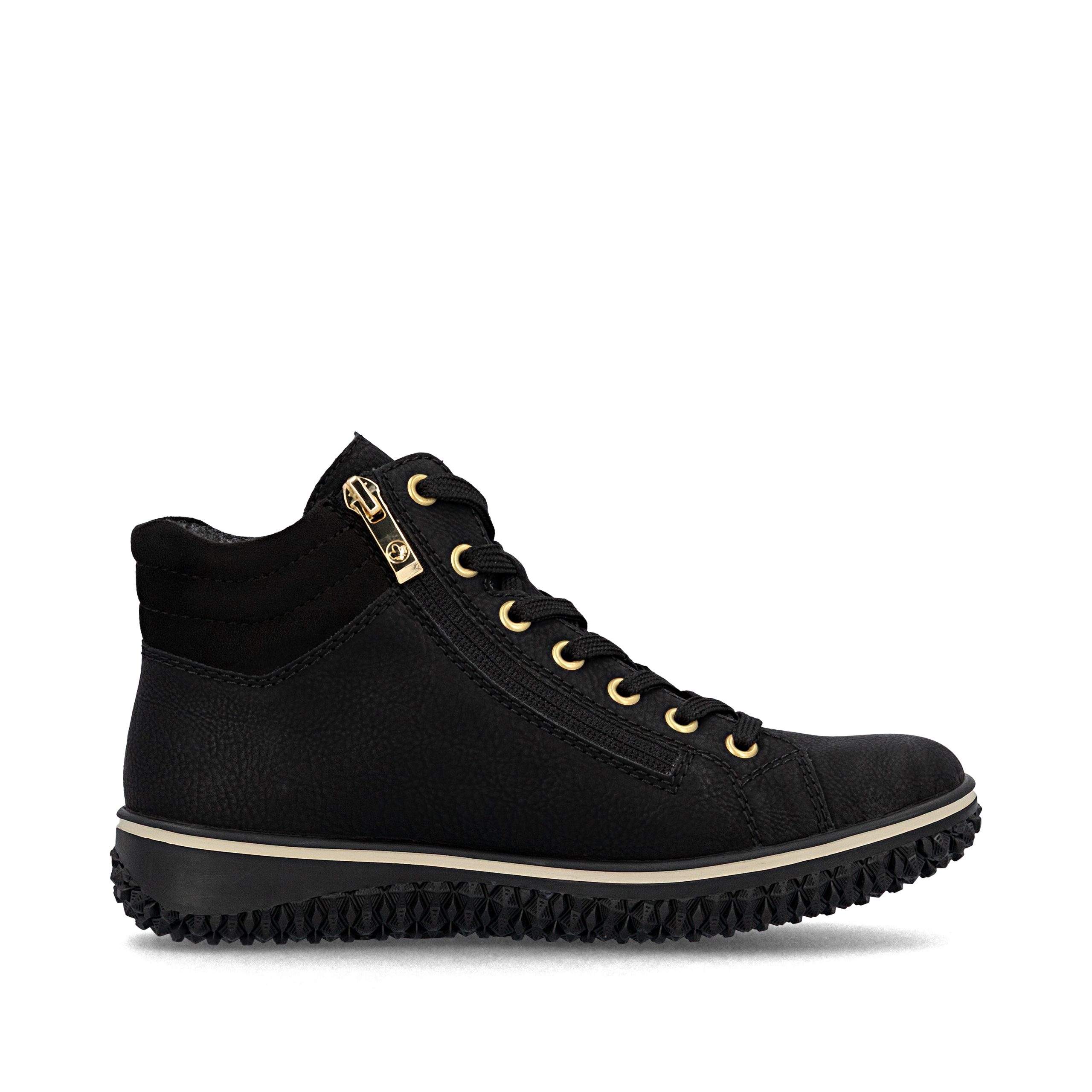 Comfort meets style. These Rieker lace-up boots impress with their modern design and high comfort. The lacing complements the zipper for functionality and comfort. The padded shaft edge provides the perfect finish and a striking look. The shoe has a grippy sole that impresses with good traction for a secure step. Thank